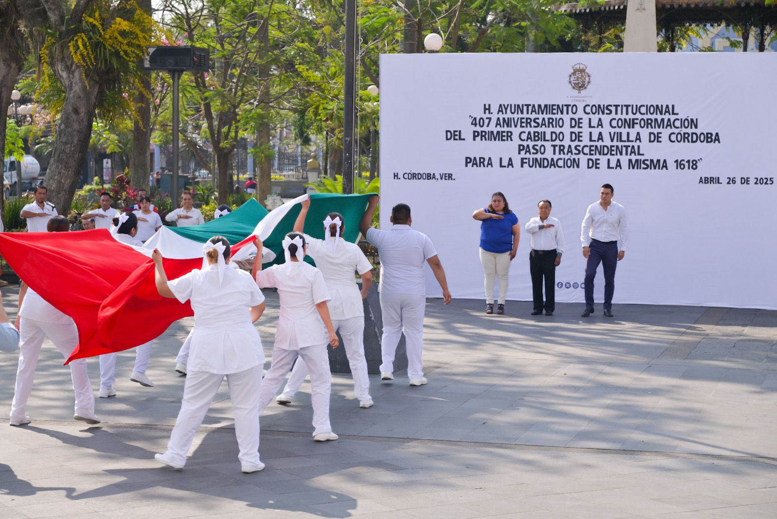 Córdoba, Ver., 26 de abril de 2025.- Autoridades municipales y el Instituto Columba Rivera llevaron a cabo el acto cívico por el 407 Aniversario de la conformación del primer Cabildo de la Villa de Córdoba.