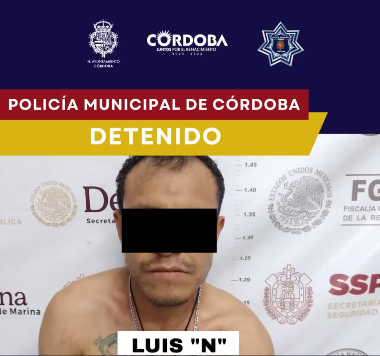 Córdoba, Ver., 21 de agosto de 2025.- Elementos de la Policía Municipal, adscritos a la Dirección de Seguridad y Protección Ciudadana, acudieron al llamado ciudadano en la avenida San Francisco esquina calle Santa Clara, en la colonia San Román, donde un sujeto se encontraba merodeando en la calle con actitud sospecha asomándose a los domicilios del lugar, a quien al solicitar una inspección, se tornó agresivo, siendo intervenido por el cuerpo de seguridad.